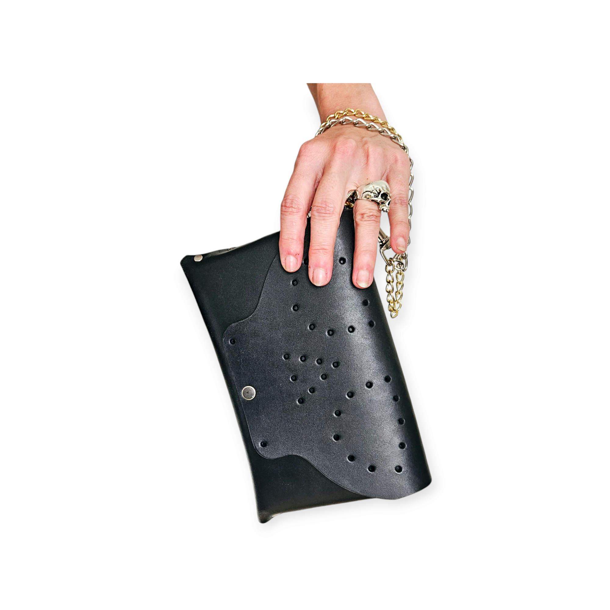 Our Skull Clutch is a great bag for carrying your essentials - phone, money, cards, makeup, etc. - either when going out, or traveling light. Easy access for the things you need, without hefting a heavy bag.